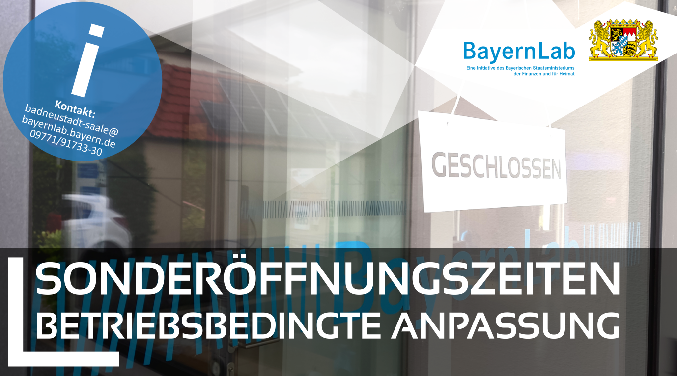 Und deshalb ist das BayernLab an folgenden Tagen nachmittags geschlossen: